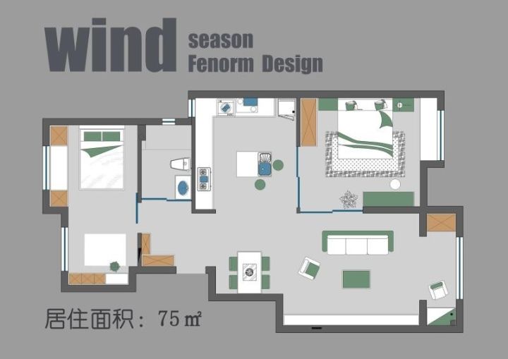 整套案例的配色方案源自秋末冬初这场季风的明朗、干练,