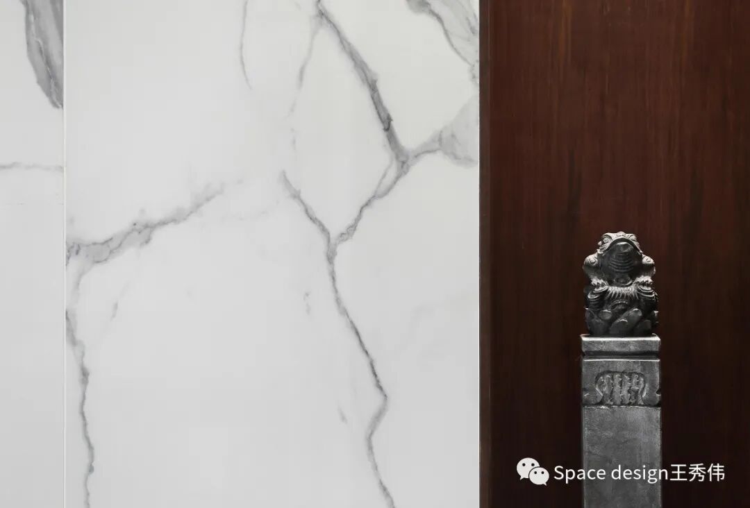 以当代的材质质感融合古典装饰摆件,提高空间的文化气息,提升品味。