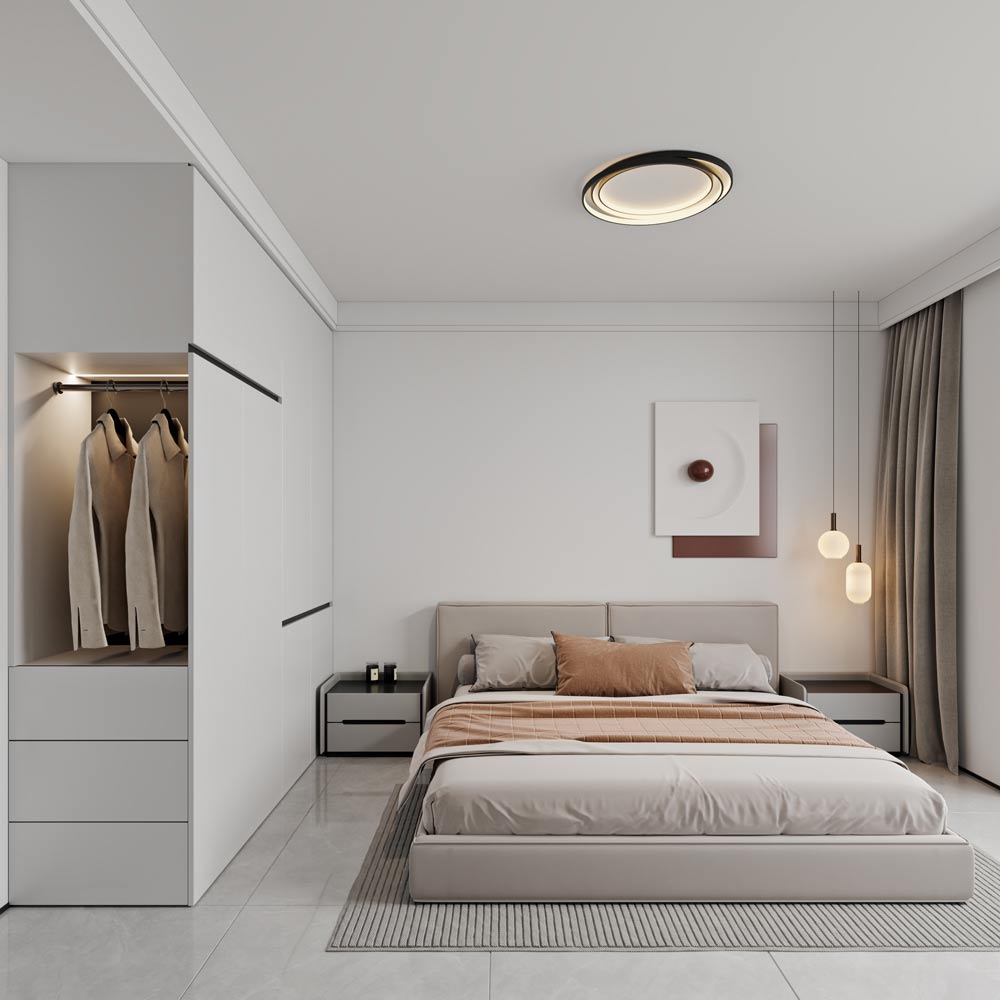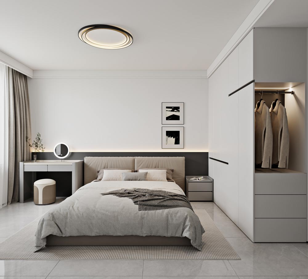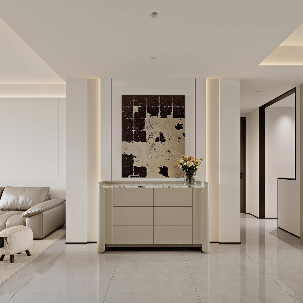 本项目定位为现代简约风格的品质住宅,核心设计理念是 “少即是多,简而不凡”。 通过对空间的极致利用、材质的细腻表达和光线的巧妙运用,打造一个兼具功能性与美学感的现代居住空间。 设计摒弃了繁复的装饰,以简洁的线条、纯粹的色彩和高品质的材质,营造出宁静、舒适且富有高级感的 生活氛围,满足当代都市人对简约、高效、有质感生活方式的追求。